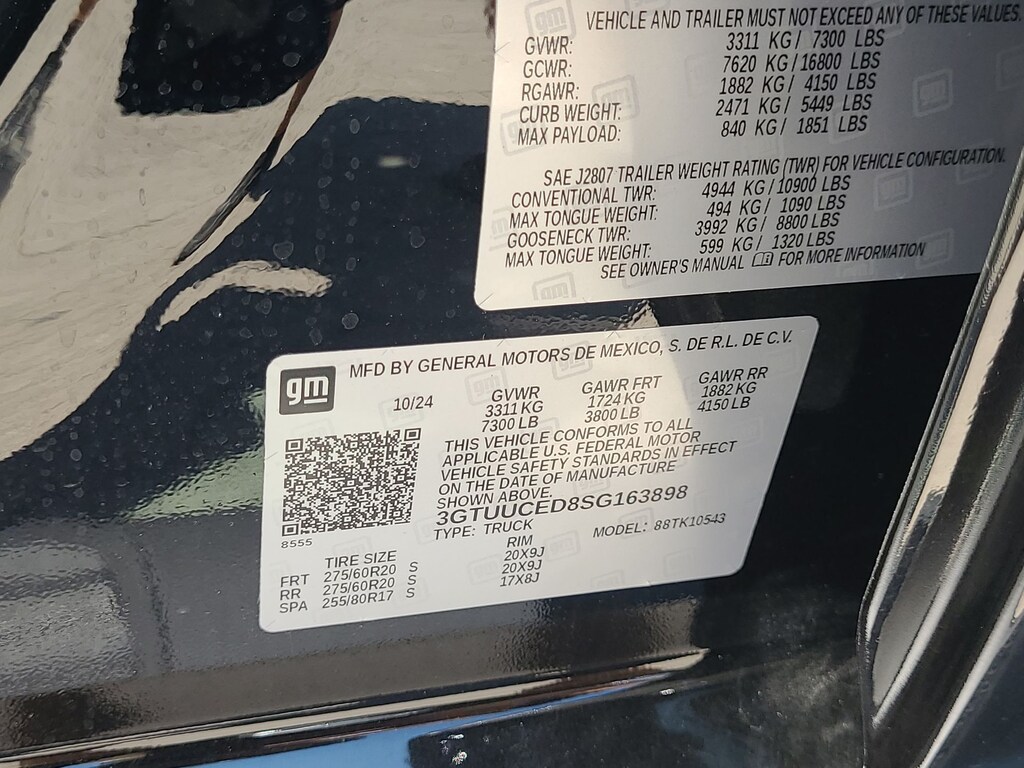 Dealer Discount of $3,742 off MSRP This 2025 GMC Sierra 1500 Elevation in Onyx Black comes with the following features: EcoTec3 5.3L V8 10-Speed Automatic 4WD 10-Speed Automatic, 4WD, and Black Cloth Cloth Rear Seat w/Storage Package, Elevation Black Package (LPO) (6 Rectangular Black Tubular Assist Steps (LPO), All-Weather Floor Liner (LPO), and Black GMC Emblems (LPO)), High Capacity Suspension Package, Max Trailering Package (Enhanced Cooling Radiator, Heavier Duty Rear Springs, and Increased RGAWR), Preferred Equipment Group 3SB (120-Volt Bed Mounted Power Outlet, 120-Volt Interior Power Outlet, 2 Charge/Data USB Ports, 2 Type-C Charge-Only Rear USB Ports, 6-Speaker Audio System Feature, Auto-Locking Rear Differential, Body Color Header w/Gloss Black Mesh Grille Bars, Color-Keyed Carpeting Floor Covering, Deep-Tinted Glass, Electric Rear-Window Defogger, Front Frame-Mounted Black Recovery Hooks, Front Rubberized-Vinyl Floor Mats, HD Rear Vision Camera, Integrated Trailer Brake Controller, Keyless Open & Start, LED Cargo Area Lighting, Manual Tilt-Wheel & Telescoping Steering Column, OnStar Services Capable, Power Door Locks, Power Front Windows w/Driver Express Up/Down, Power Front Windows w/Passenger Express Down, Power Rear Windows w/Express Down, Push Button Start, Rear Rubberized-Vinyl Floor Mats, Remote Vehicle Starter System, SiriusXM w/360L Trial Subscription, Steering Wheel Audio Controls, Theft Deterrent System (Unauthorized Entry), and Wi-Fi Hotspot Capable), Preferred Package (Adaptive Cruise Control, Hitch View, In-Vehicle Trailering System App, Power Sliding Rear Window w/Rear Defogger, Premium Bose 7-Speaker Sound System, Rear Wheelhouse Liners, and Universal Home Remote), Trailering Package (Hitch Guidance), 10-Speed Automatic, 4WD, Black Cloth, 10-Way Power Driver Seat Adjuster w/Lumbar, 2 Charge/Data USB Ports Inside Center Console, 220 Amp Alternator, 4-Way Manual Passenger Seat Adjuster, 4-Wheel Disc Brakes, 6 Speakers, ABS brakes, Air Conditioning, Alloy wheels, AM/FM radio: SiriusXM with 360L, Apple CarPlay/Android Auto, Auto High-beam Headlights, Automatic Emergency Braking, Automatic temperature control, Auxiliary External Transmission Oil Cooler, Brake assist, Buckle to Drive, Bumpers: body-color, Cloth Seat Trim, Compass, Delay-off headlights, Driver door bin, Driver vanity mirror, Dual front impact airbags, Dual front side impact airbags, Electronic Precision Shift, Electronic Stability Control, Emergency communication system: OnStar, Engine Block Heater, External Engine Oil Cooling, Floor-Mounted Center Console, Following Distance Indicator, Forward Collision Alert, Front 40/20/40 Split-Bench Seat, Front anti-roll bar, Front Bucket Seats, Front Center Armrest w/Storage, Front dual zone A/C, Front fog lights, Front Pedestrian Braking, Front reading lights, Front wheel independent suspension, Fully automatic headlights, Genuine wood dashboard insert, Heated door mirrors, Heated Driver & Front Outboard Passenger Seating, Heated front seats, Heated steering wheel, Illuminated entry, IntelliBeam Automatic High Beam On/Off, Lane Keep Assist w/Lane Departure Warning, Low tire pressure warning, Navigation System, Occupant sensing airbag, Outside temperature display, Overhead airbag, Overhead console, Panic alarm, Passenger door bin, Passenger vanity mirror, Power door mirrors, Power driver seat, Power steering, Power windows, Radio data system, Radio: Premium GMC Infotainment Audio System, Rear reading lights, Rear seat center armrest, Rear step bumper, Rear window defroster, Remote keyless entry, Security system, Speed control, Speed-sensing steering, Split folding rear seat, Spray-On Pickup Bedliner w/GMC Logo, Steering wheel mounted audio controls, Tachometer, Telescoping steering wheel, Tilt steering wheel, Traction control, Trip computer, Variably intermittent wipers, Voltmeter, Wheels: 20 x 9 High Price includes: $1500 - Bonus Cash. Exp. 04/30/2026