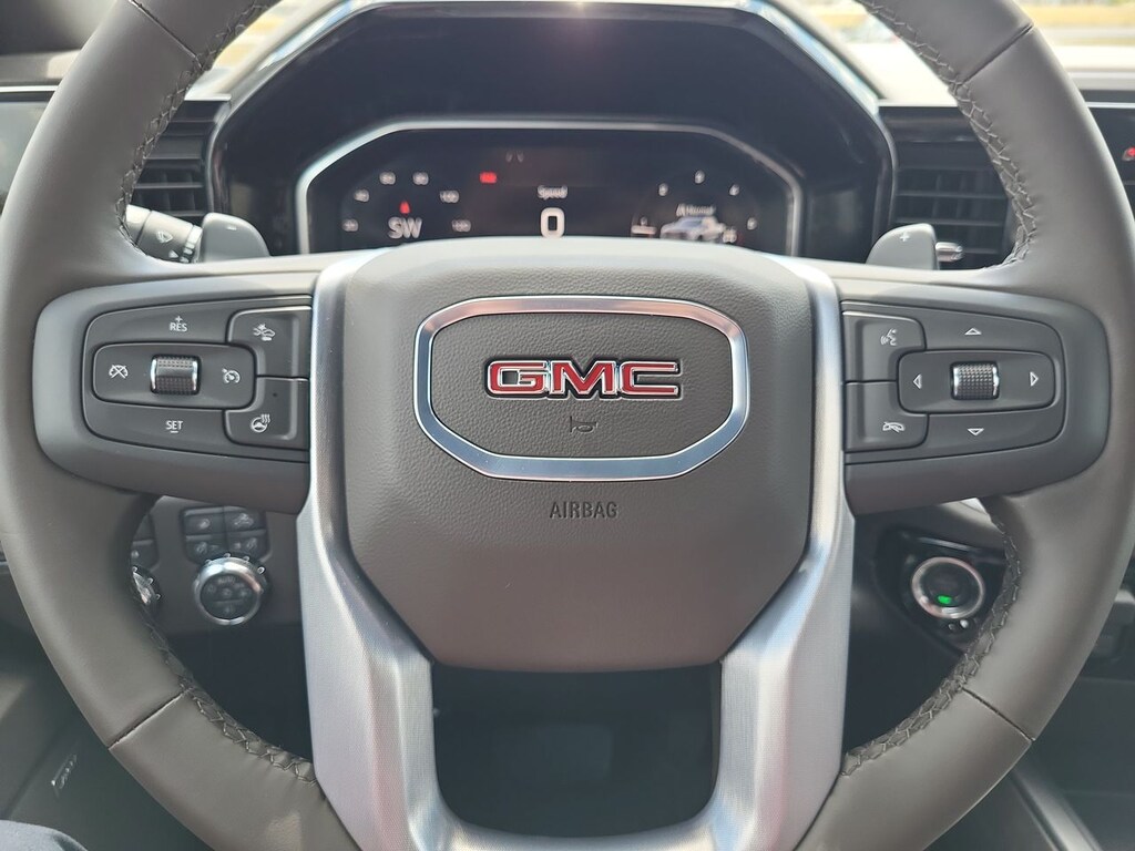 Volcanic Red Tintcoat 2026 GMC Sierra 1500 SLT 4WD 10-Speed Automatic 3.0L I6 10-Speed Automatic, 4WD, Dark Walnut/Slate Leather.