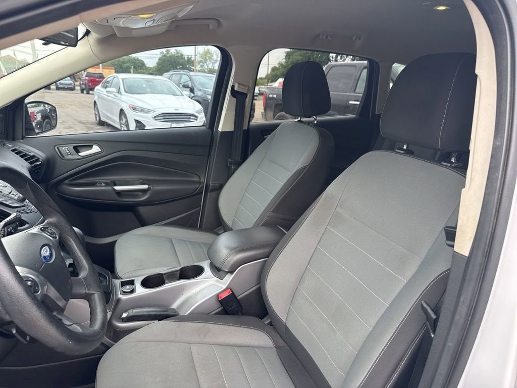 This 2016 Ford Escape SE in Oxford White comes with the following features: EcoBoost 1.6L I4 GTDi DOHC Turbocharged VCT 6-Speed Automatic FWD Equipment Group 200A, 3.21 Axle Ratio, 4-Wheel Disc Brakes, 6 Speakers, ABS brakes, Air Conditioning, Alloy wheels, AM/FM radio: SiriusXM, Brake assist, Bumpers: body-color, CD player, Cloth Buckets w/60/40 Split Rear Seat, Compass, Delay-off headlights, Driver door bin, Driver vanity mirror, Dual front impact airbags, Dual front side impact airbags, Electronic Stability Control, Emergency communication system: 911 Assist, Exterior Parking Camera Rear, Four wheel independent suspension, Front anti-roll bar, Front Bucket Seats, Front Center Armrest, Front fog lights, Front reading lights, Fully automatic headlights, Illuminated entry, Interior Cargo Cover, Knee airbag, Low tire pressure warning, Occupant sensing airbag, Outside temperature display, Overhead airbag, Overhead console, Panic alarm, Passenger door bin, Passenger vanity mirror, Power door mirrors, Power driver seat, Power steering, Power windows, Radio data system, Radio: AM/FM Single CD/MP3, Rear anti-roll bar, Rear seat center armrest, Rear window defroster, Rear window wiper, Remote keyless entry, Speed control, Speed-sensing steering, Split folding rear seat, Steering wheel mounted audio controls, SYNC Communications & Entertainment System, Tachometer, Telescoping steering wheel, Tilt steering wheel, Traction control, Trip computer, Variably intermittent wipers, and Wheels: 17 Alloy Sparkle Silver Painted Alloy.